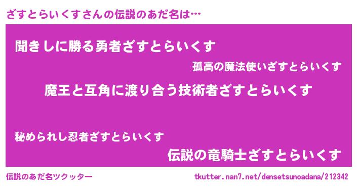 | ファンタジー風あだ名 | 『ゼザストゥ』『クインザット』 |