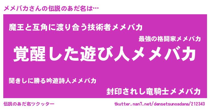 | ヒーロー風カッコイイあだ名 | 『天弓騎士メメ』『仮面メメダー』 |