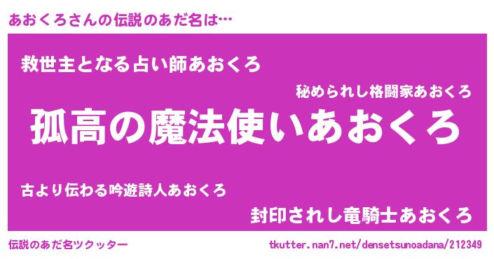 | ヒーロー風カッコイイあだ名 | 『仮面アオダー』『天弓騎士アオ』 |