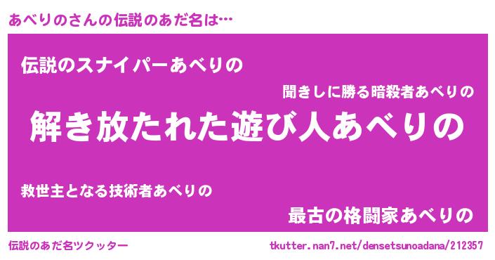 | 恥ずかしいあだ名 | 『アベリンリン』『プリティーあべりの』 |