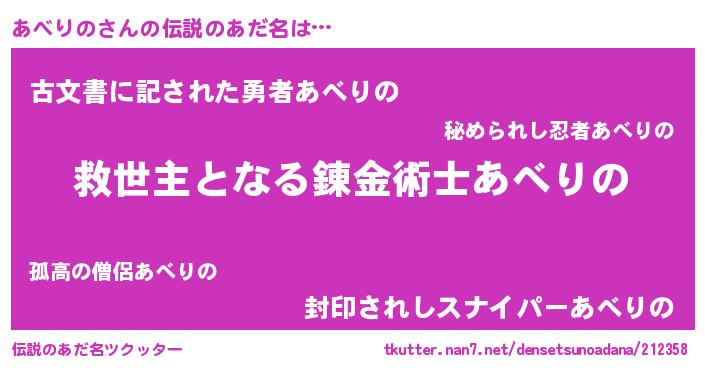 | 意味不明あだ名 | 『自称あべりの』『永久保存あべりの』 |