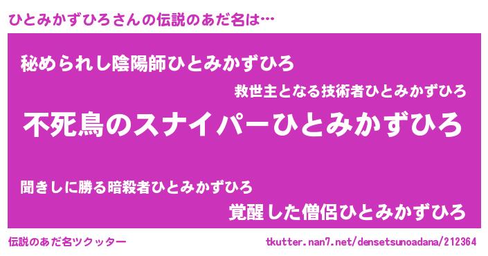 | 胡散臭い通販商品みたいなあだ名 | 『モテモテ間違いなし霊験あらたかなお札…その名も「ひとみかずひろ」』 |