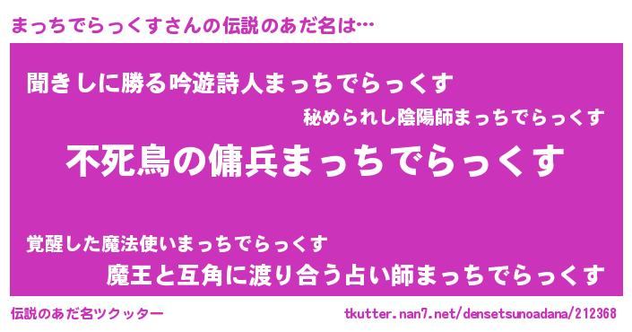 | ヘコむあだ名 | 『まっにゅー』『まっちでらっくす(笑)』 |