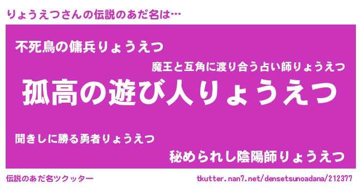 | ポケモン風あだ名 | 『ヒリョウエツ』『リョチュウ』 |