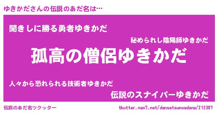 | 女子向けラノベタイトル風あだ名 | 『ゆきかだが死なない童話 林檎のゆきかだの診療簿』 |