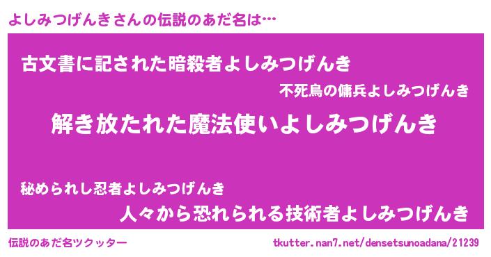 | ヘコむあだ名 | 『よし太郎』『よしみつげんき(笑)』 |