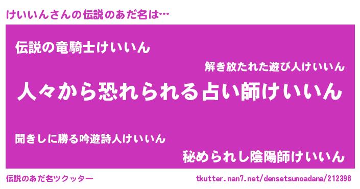 | ヒーロー風カッコイイあだ名 | 『正義の使者けいいん』『仮面ケイダー』 |