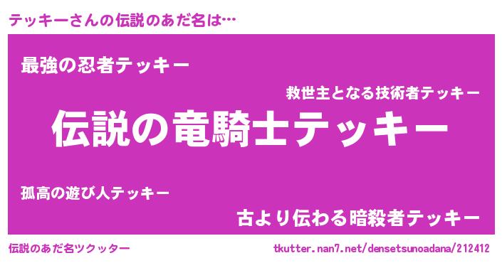 | 意味不明あだ名 | 『ペロリンテッキー』『自称テッキー』 |