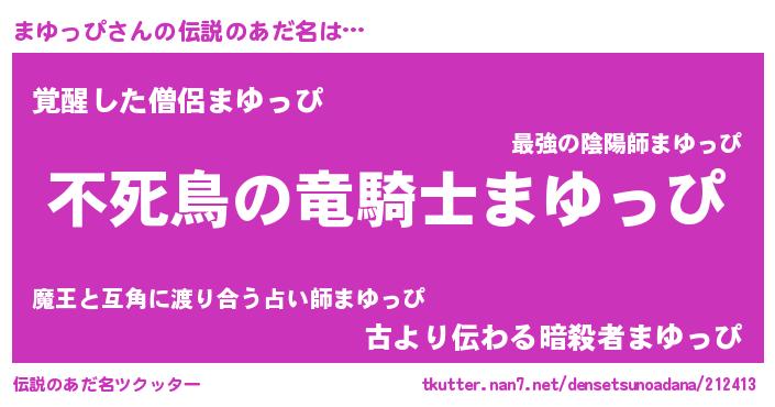 | ヒーロー風カッコイイあだ名 | 『仮面マユダー』『スーパーマユッピ』 |