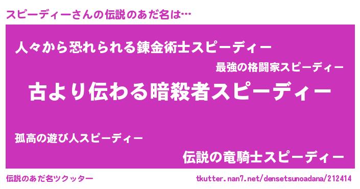 | 胡散臭い通販商品みたいなあだ名 | 『来世でも幸せになれる健康食品…その名も「スピーディー」』 |