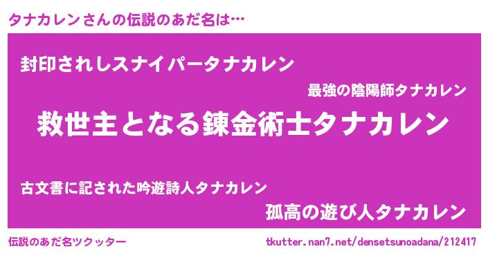 | ヒーロー風カッコイイあだ名 | 『天空の使者タナカレン』『黄金騎士タナ』 |