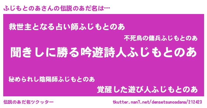 | 意味不明あだ名 | 『永久保存ふじもとのあ』 |