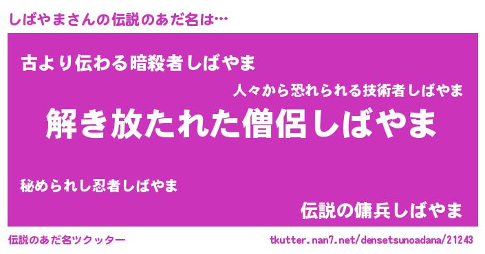 | 意味不明あだ名 | 『とにかく怪しいしばやま』 |