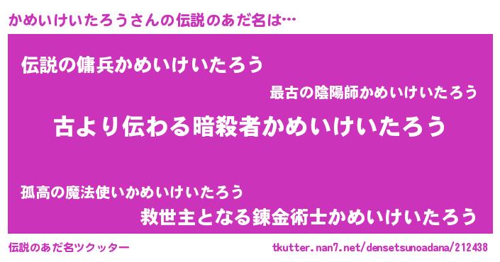 | ヘコむあだ名 | 『かめいけいたろう(笑)』『かめにゅー』 |