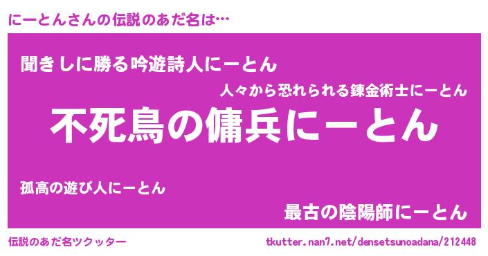 | ヘコむあだ名 | 『にーにゅー』『にーとん(小並感)』 |