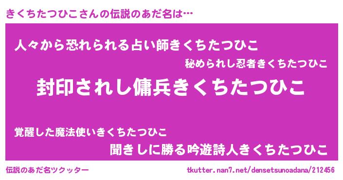 | 男性向けラノベタイトル風あだ名 | 『キクチタツヒコアートオンライン』 |