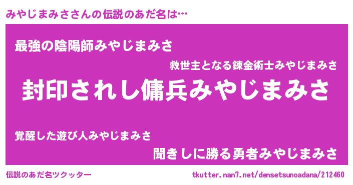 | ヘコむあだ名 | 『みやにゅー』『つくし』『みやっ子』 |