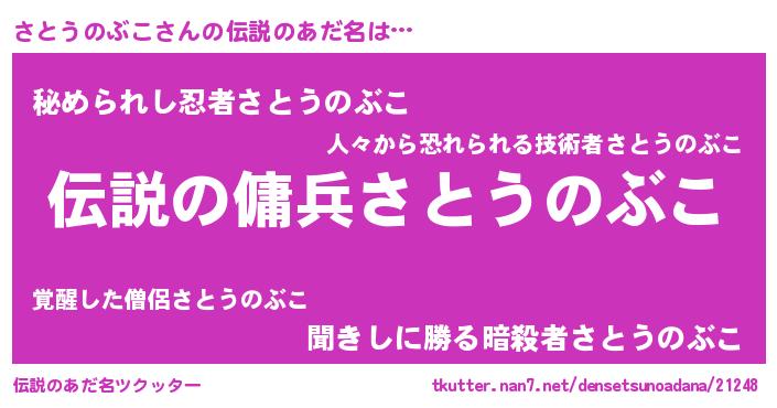 | 胡散臭い通販商品みたいなあだ名 | 『必ず成功する水晶球…その名も「さとうのぶこ」』 |