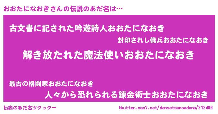 | 女子向けラノベタイトル風あだ名 | 『おおたになおきの卵を拾いまして』 |
