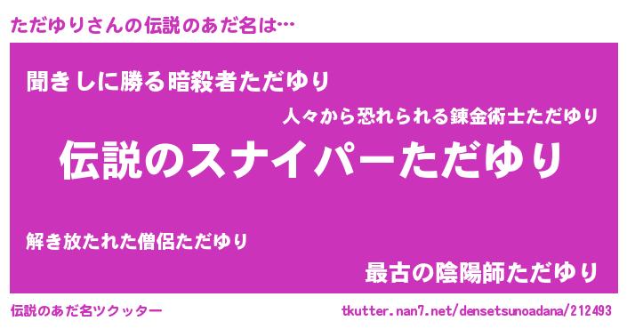 | 胡散臭い通販商品みたいなあだ名 | 『必ず成功する霊験あらたかなお札…その名も「ただゆり」』 |