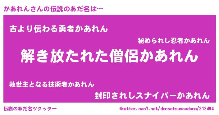 | 意味不明あだ名 | 『とにかく怪しいかあれん』 |