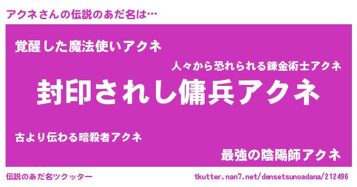 | 肩書あだ名 | 『アクネディレクター』『アクネCEO』 |