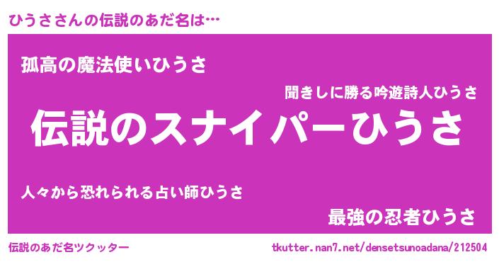| 胡散臭い通販商品みたいなあだ名 | 『必ず成功する霊験あらたかなお札…その名も「ひうさ」』 |