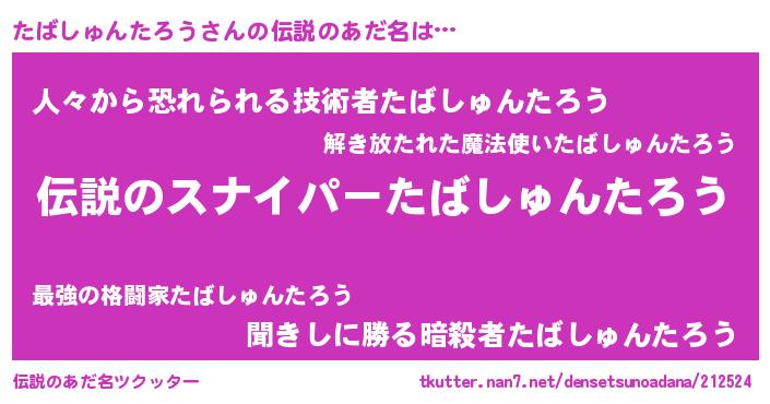 | 男性向けラノベタイトル風あだ名 | 『たばしゅんたろうの憂鬱』 |