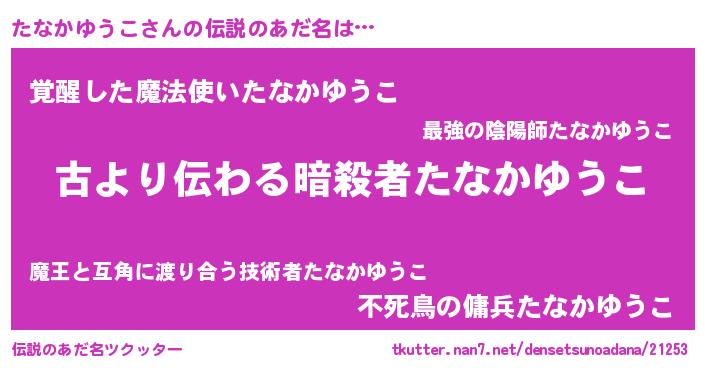 | ヒーロー風カッコイイあだ名 | 『ネオタナカユウコ』『銀牙騎士タナ』 |