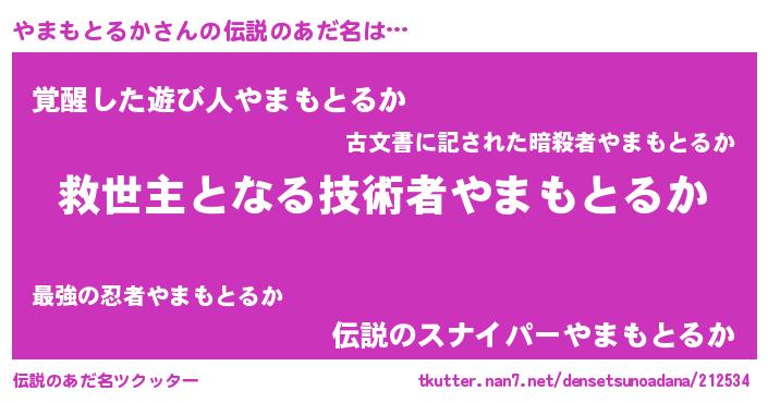 | ファンタジー風あだ名 | 『クインヤット』『ファントムヤマス』 |