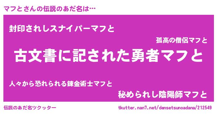 | 意味不明あだ名 | 『つくし科マフと属』『永久保存マフと』 |