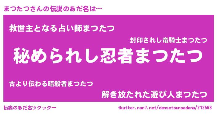 | 意味不明あだ名 | 『まつたつフォーエバー』『自称まつたつ』 |