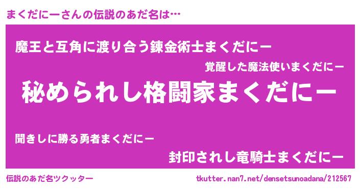 | 意味不明あだ名 | 『まくだにーフォーエバー』 |