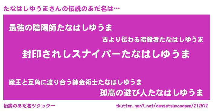| ヒーロー風カッコイイあだ名 | 『スーパータナハシユウマ』 |