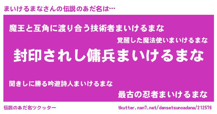 | 男性向けラノベタイトル風あだ名 | 『マイケルマナアートオンライン』 |
