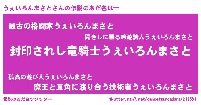 | 意味不明あだ名 | 『住所不定無職うぇいろんまさと(2歳)』 |