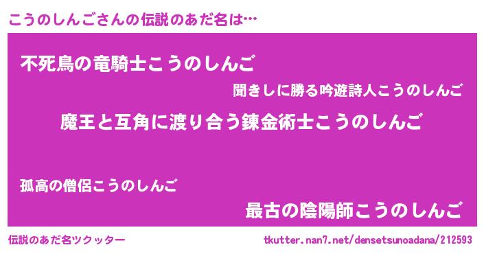 | 意味不明あだ名 | 『自称こうのしんご』 |