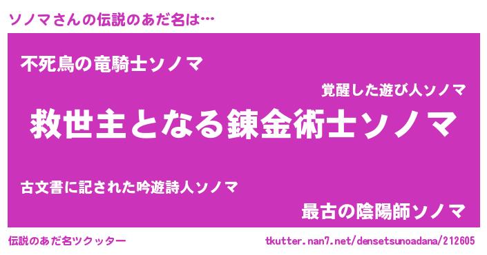 | 男性向けラノベタイトル風あだ名 | 『ノーゲーム・ノーソノマ』 |