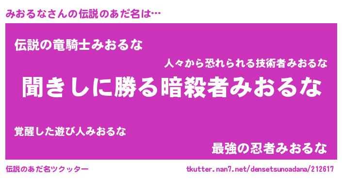 | 女子向けラノベタイトル風あだ名 | 『みおるななんてお断りですっ。』 |