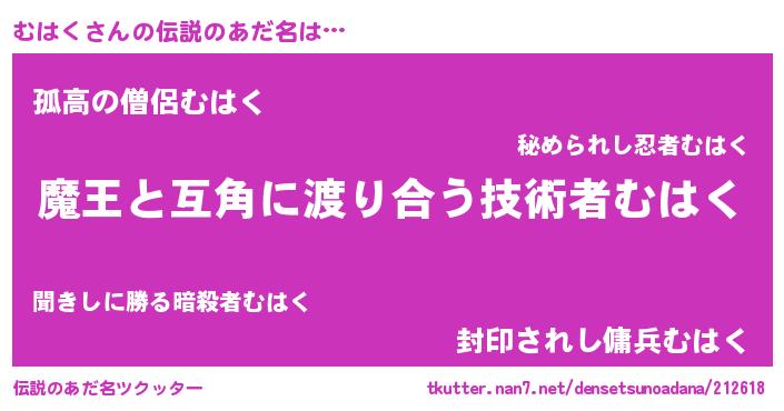 | ヒーロー風カッコイイあだ名 | 『愛の使者むはく』『ウルトラ戦士ムハク』 |