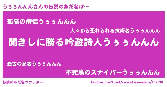 | 男性向けラノベタイトル風あだ名 | 『うぅぅんんんという概念が存在しない退屈な世界 』 |