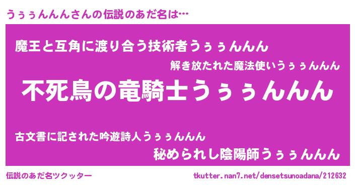 | 意味不明あだ名 | 『住所不定無職うぅぅんんん(4歳)』 |