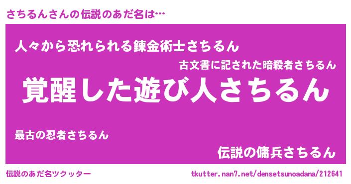 | ヒーロー風カッコイイあだ名 | 『最強戦士サチルン』『魔戒騎士サチ』 |