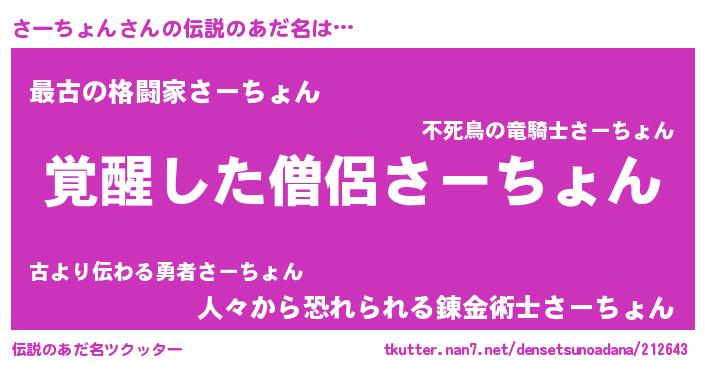 | 女子向けラノベタイトル風あだ名 | 『さーちょん様がみてる』 |