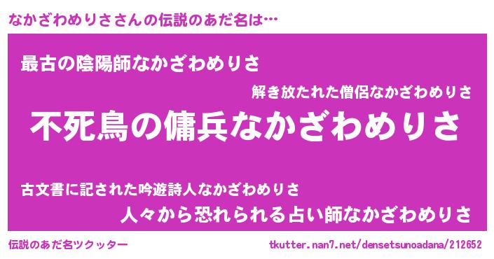 | 男性向けラノベタイトル風あだ名 | 『ナカザワメリサアートオンライン』 |