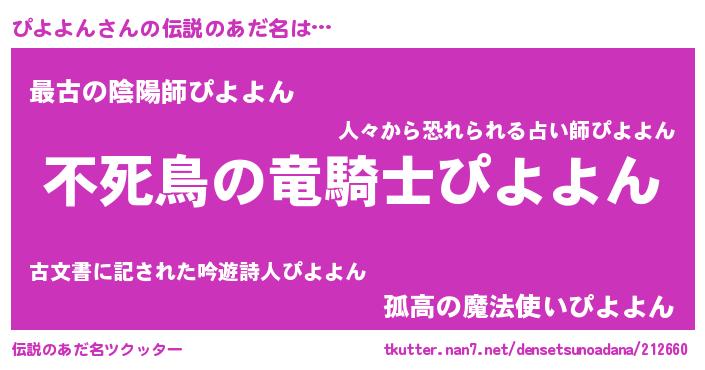 | 女子向けラノベタイトル風あだ名 | 『ぴよよん姫と円卓の騎士』 |
