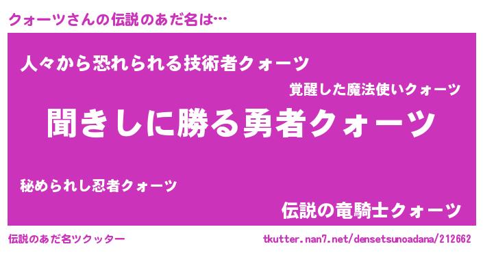| ヘコむあだ名 | 『クォーツ(遠い目)』『クォふぇ~』 |