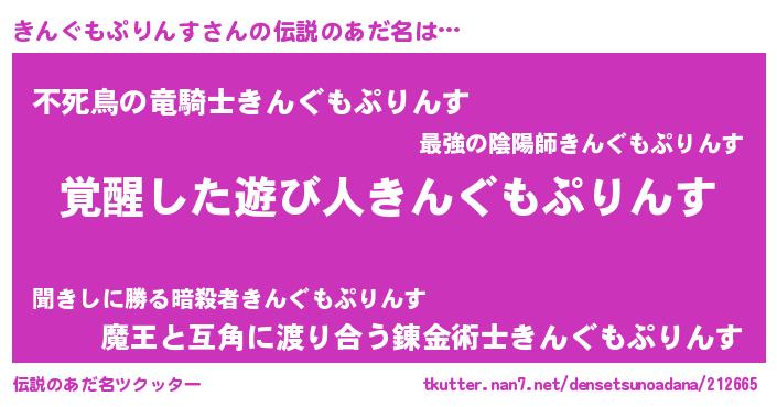| 意味不明あだ名 | 『とにかく怪しいきんぐもぷりんす』 |