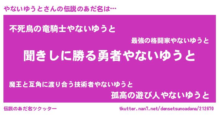 | ヒーロー風カッコイイあだ名 | 『仮面ヤナダー』『ネオヤナイユウト』 |