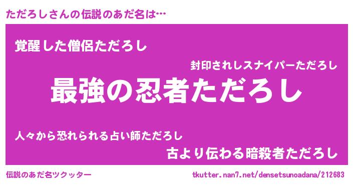 | ヒーロー風カッコイイあだ名 | 『仮面タダダー』『ウルトラただろしマン』 |
